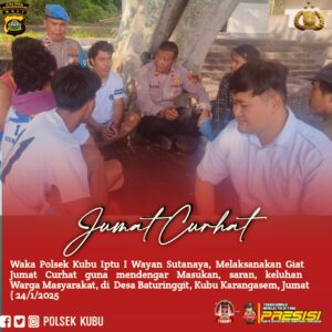 Dengar Keluhan Warga Secara Langsung, Polsek Kubu Polres Karangasem Kembali Melaksanakan Giat Jumat Curhat TNI dan Polri|January 24, 2025by Locus DelictiNews Bali locusdelictinews|olsek Kubu,Waka Polsek Kubu Iptu I Wayan Sutanaya, bersama angota melaksanakan