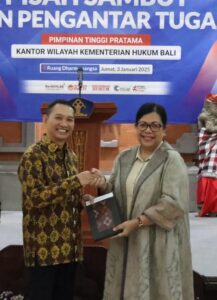 Tongkat Estafet Kepemimpinan Berganti Di Kemenkum Bali, Wahyu Eka Putra Jabat Kakanwil Berita Daerah|January 4, 2025by Locus DelictiNews DENPASAR,Locusdelictinews| Kantor Wilayah Kementerian Hukum (Kemenkum) Bali menggelar acara pisah sambut dan pengantar